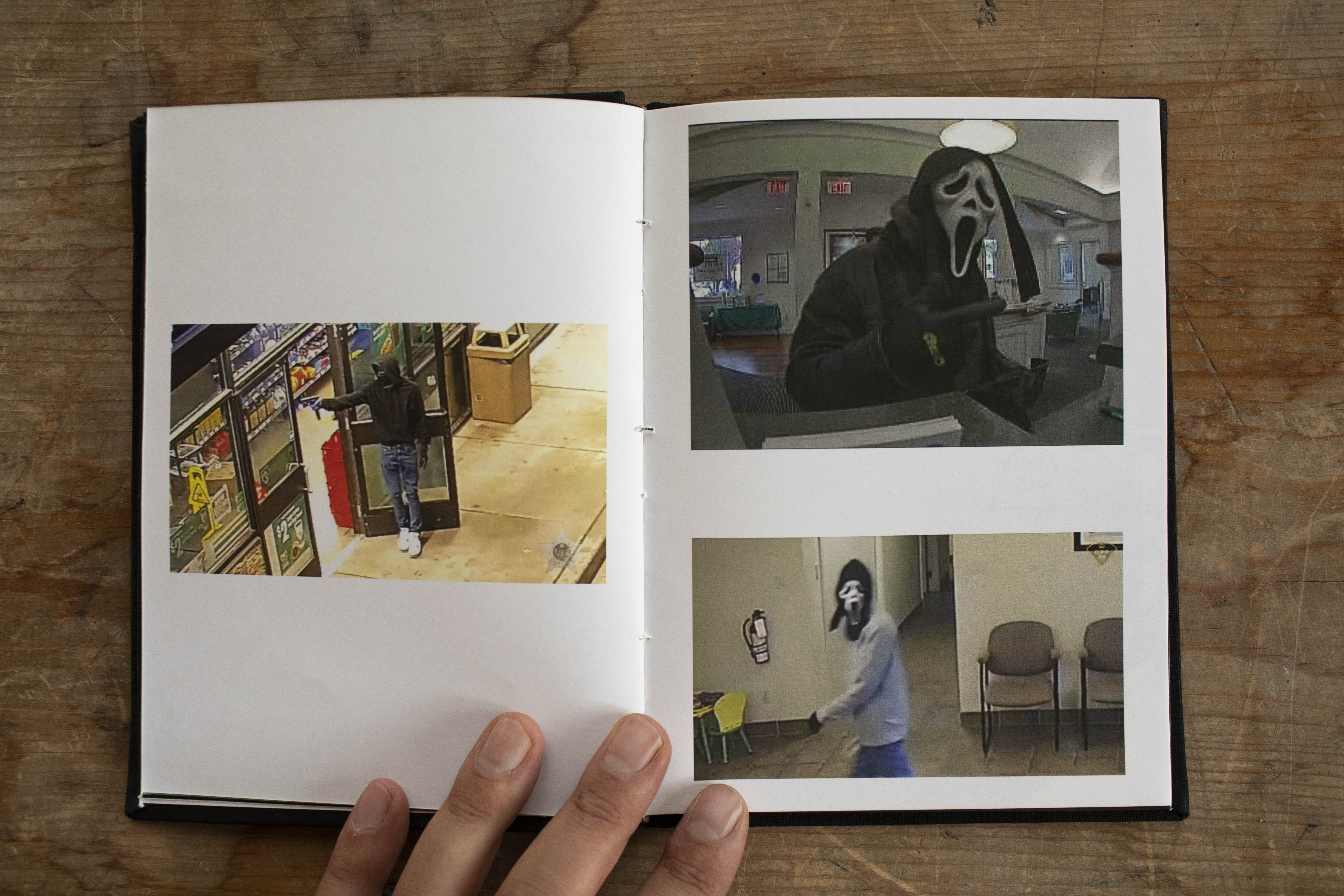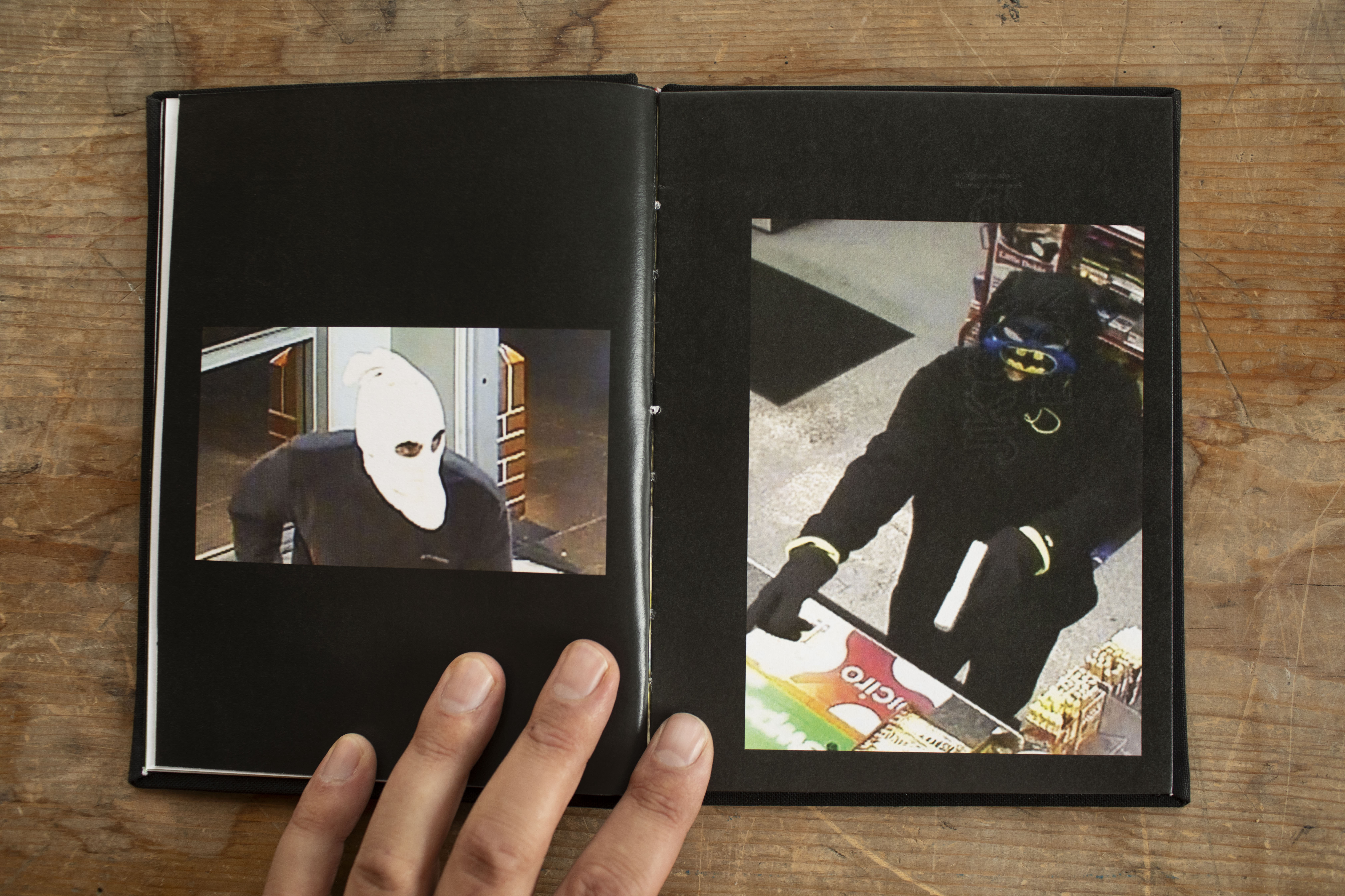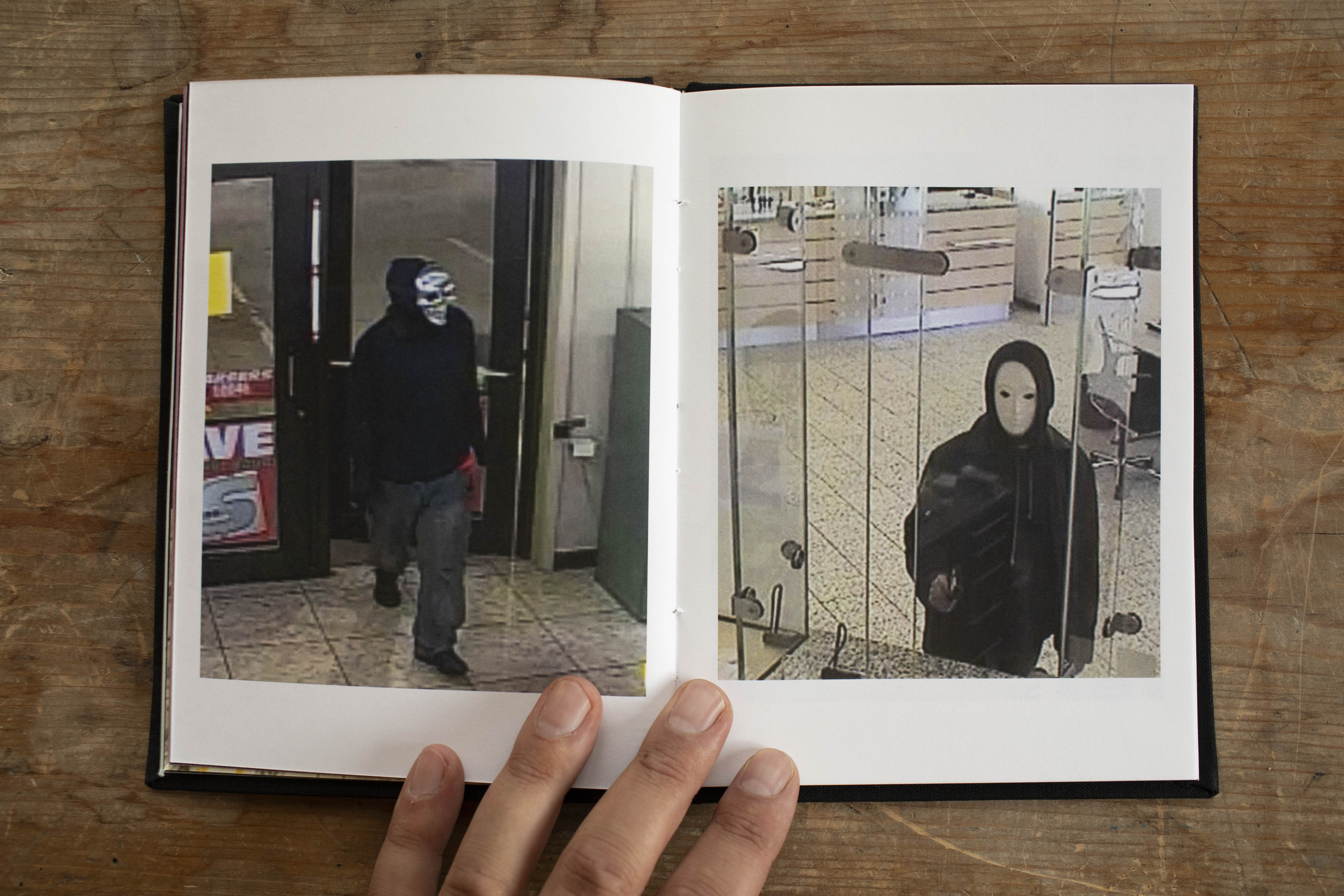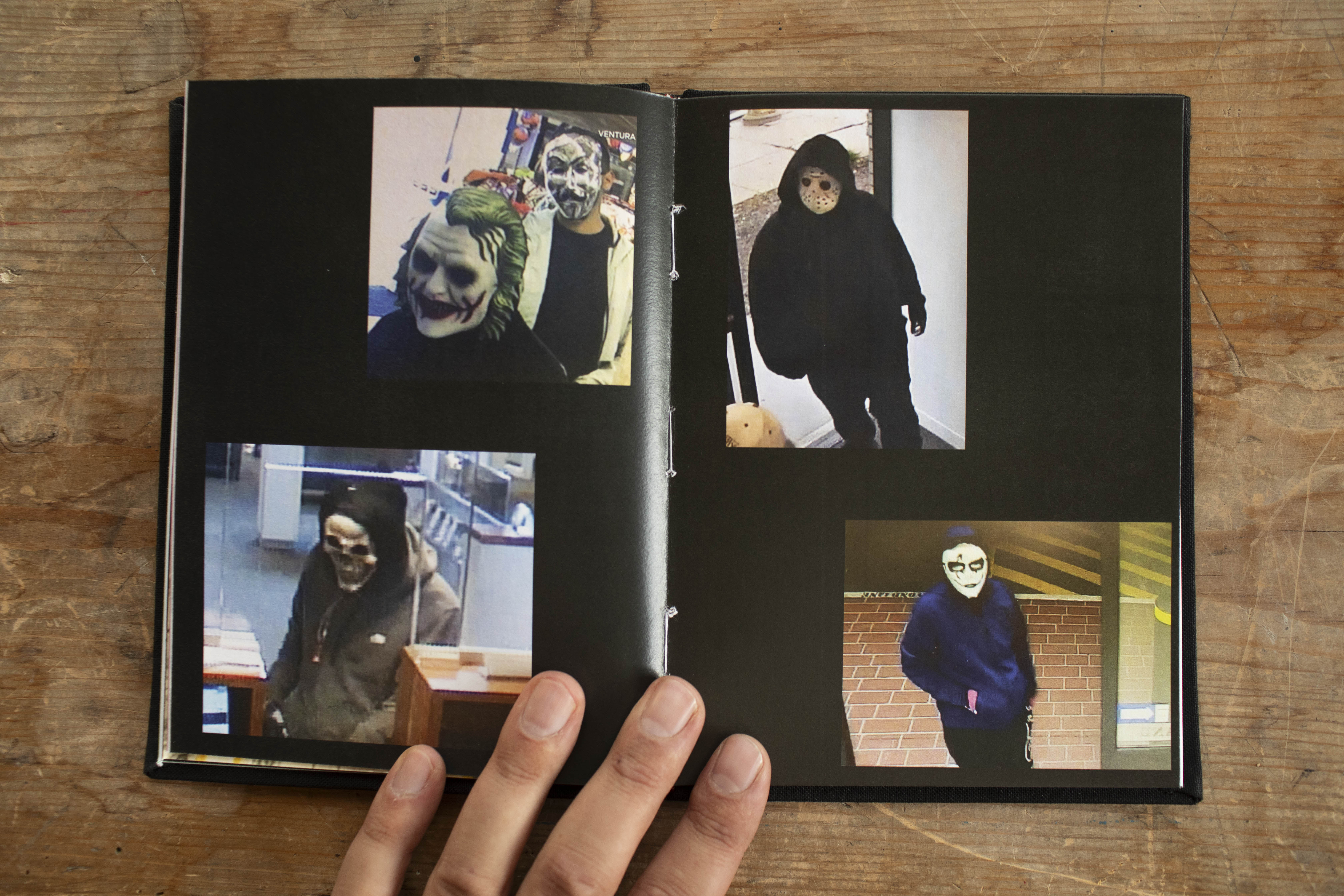 In this book, the Australian artist reveals a collection of photographs gleaned from the internet of these “masks of crime.”